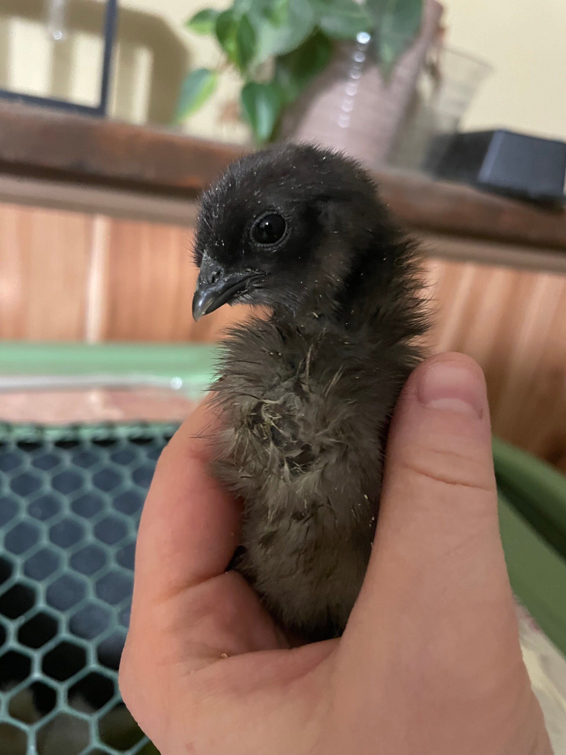 A specialty hybrid bred for simple chick identification at hatch and exceptional egg color. Chicks show clear color differences by sex from day one, making flock planning easy.As adults, these birds display striking fibromelanistic traits—dark skin, legs, and combs—paired with unique, eye-catching plumage including a feathery crest on their head. Hens can lay seafoam green, pistachio or olive green eggs, however green egg color is not guaranteed with F2 olive eggers. Low possibility for khaki colored egg.